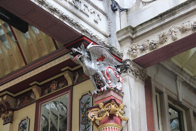 A short walk brings you to Leadenhall Market, a vibrant Victorian market with an elaborate Neo-Gothic roof designed by Sir Horace Jones. This market is not only a shopper’s paradise but also a movie star—used in Harry Potter and the Philosopher’s Stone as Diagon Alley. As you wander, your guide will explain its ancient roots, dating back to Roman Londinium, and its Victorian revival.